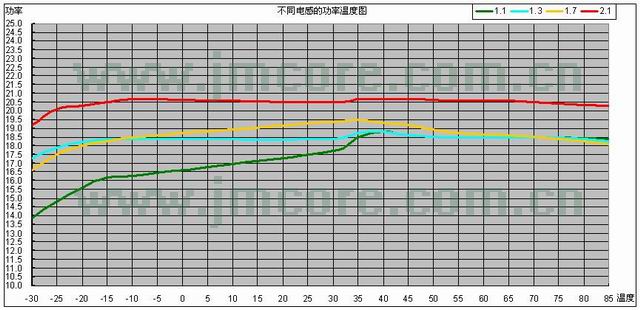l 不同的电感,对输出功率是有影响,1.1—1.7,在使用中,功率都基本上一致,但AL=2.1时,功率就上去了。