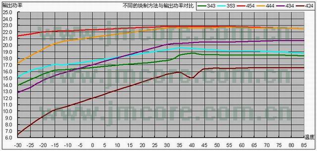 l 从输出功率的角度,三极管端的圈数对输出功率有着阶级的差别,比如:343、353,三极管端是三圈的时候,功率都是19瓦,但采用,444和454,三极管端是4圈的时候,功率就达到22瓦。但如果是434、424的时候,由于电感端电压电流都有较大的下降,也影响了三极管的放大,因此输出功率都有了较大的下降。